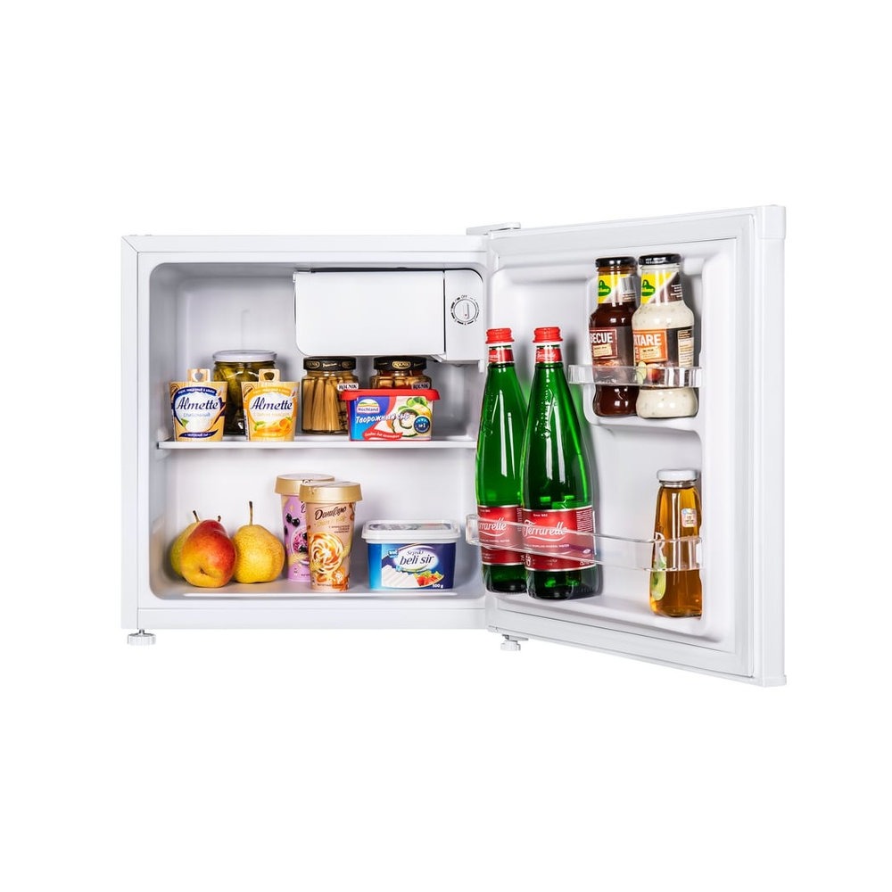 Холодильник Maunfeld MFF50W предлагает компактное и продуманное решение. Его полезный объем составляет 46 литров и включает в себя морозильное отделение, две полки для продуктов и ящик для овощей. Модель выполнена в классическом белом цвете, что придает ей элегантный и универсальный вид, гармонирующий с любым интерьером.