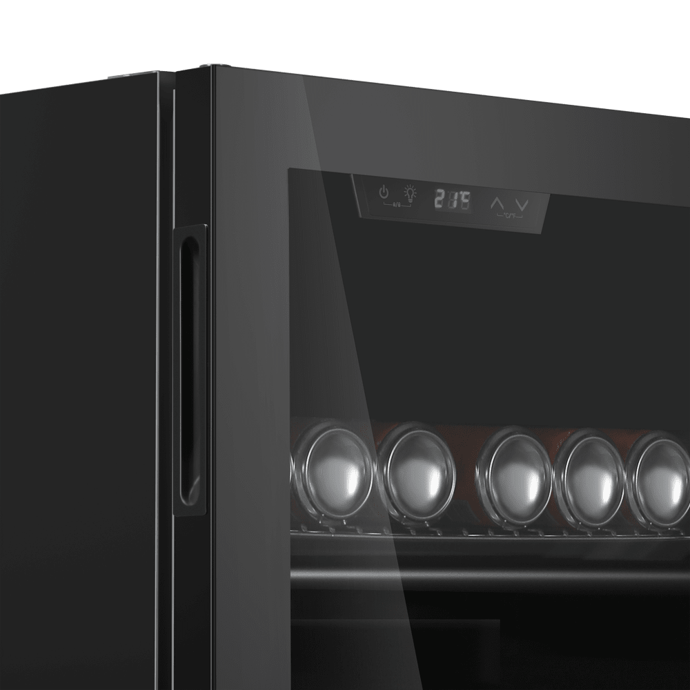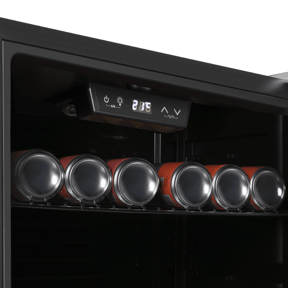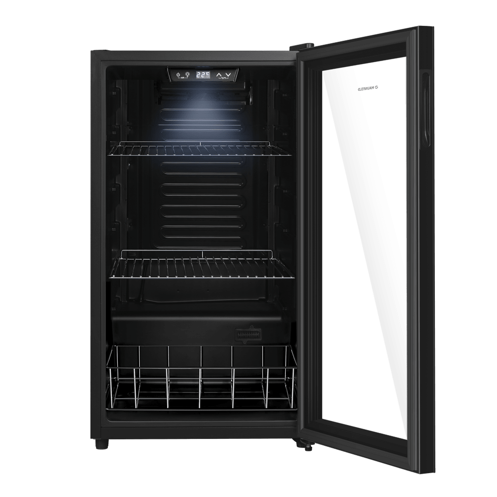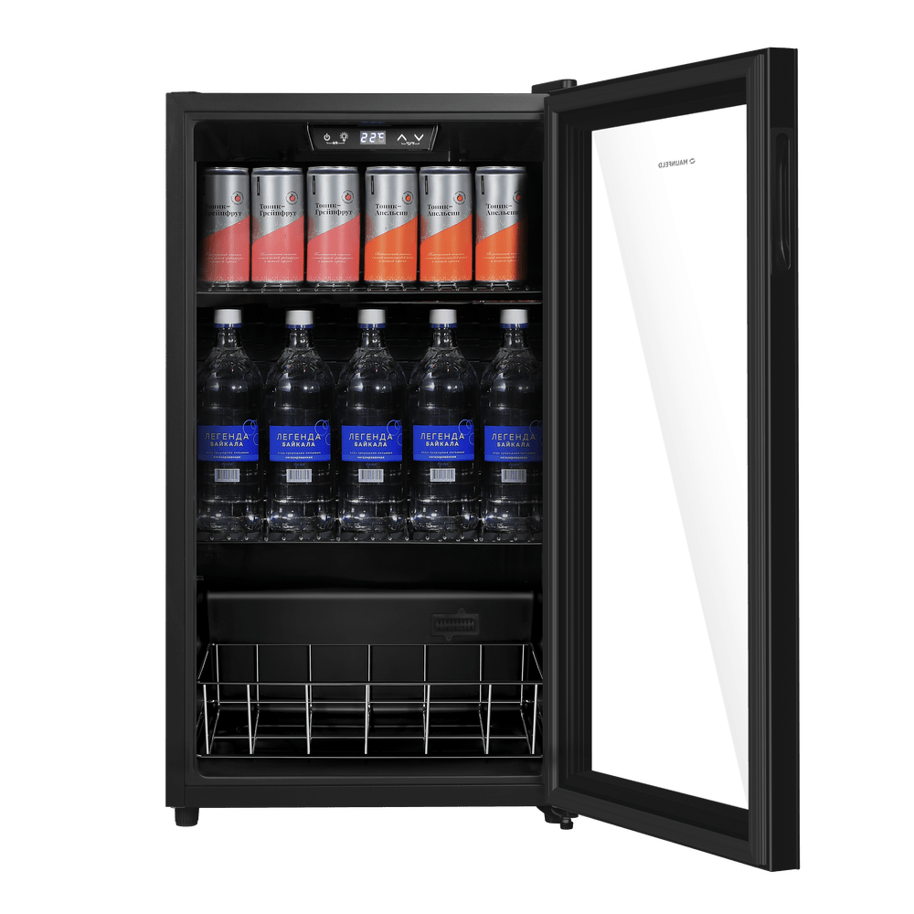 - Современный дизайн и функциональность: Элегантный черный стеклянный фасад в стиле «Модерн» делает холодильник стильным элементом интерьера. При этом он предлагает полноценную функциональность: три полки, сенсорное управление и эффективное охлаждение, идеально сочетая эстетику и практичность.