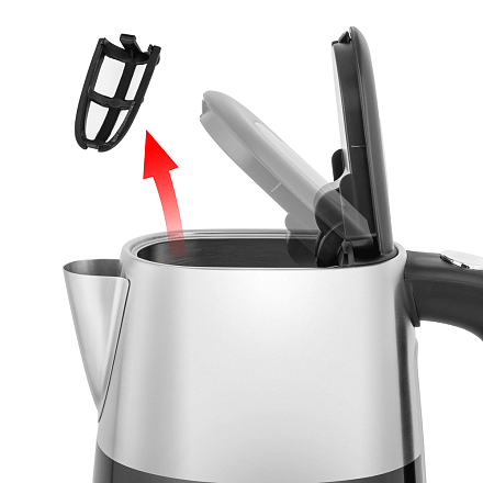 - Съемный фильтр от накипи: Удобный съемный фильтр задерживает частицы накипи, обеспечивая чистоту воды, и легко очищается при необходимости.