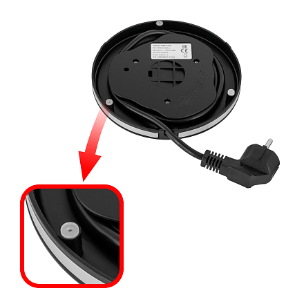 - Автоотключение и отсек для шнура: Прибор автоматически отключается при закипании. В основании предусмотрено место для хранения лишней длины шнура.