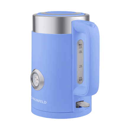 Электрический чайник MAUNFELD MFK-631DB, выполненный в элегантном темно-голубом цвете, станет стильным и функциональным дополнением любой кухни, гармонично вписываясь в любой интерьер. Чайник вмещает 1,7 литра воды — этого объема достаточно, чтобы напоить чаем даже большую компанию. Система автоматического открывания крышки позволяет открывать прибор одним нажатием на кнопку, что очень удобно при наполнении водой. Удобный индикатор уровня воды поможет точно определить, сколько воды нужно налить для одной или двух стандартных чашек, предотвращая лишнее кипячение. Чайник оснащен скрытым нагревательным элементом, который устойчив к образованию накипи и значительно упрощает уход за прибором. Выключатель с подсветкой не только удобен в использовании, но и наглядно сигнализирует о том, что прибор включен и работает. Мощность чайника обеспечивает быстрое закипание. Съемный фильтр от накипи, расположенный в носике, задерживает частицы известковых отложений, обеспечивая чистоту воды. Поворотная база на 360 градусов гарантирует комфортное использование. Сочетание вместительности, продуманных функций и элегантного дизайна делает этот чайник идеальным выбором для ежедневного использования.