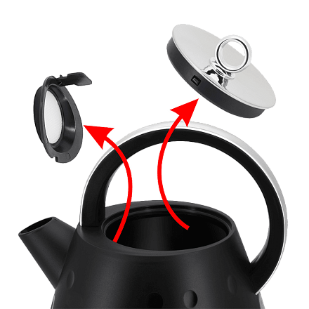 - Стильный дизайн и вместительный объем 1,7 л: Элегантный черный корпус и большой объем подходят для любой семьи.