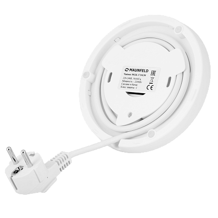 Чайник MAUNFELD MGK-1710GW — это современная модель, выполненная в элегантном белом цвете, которая сочетает в себе высокую функциональность и стильный дизайн. Корпус изготовлен из прочного боросиликатного стекла, обладающего высокой стойкостью к температурным перепадам и механическим повреждениям. Объем чайника составляет 1.7 литра, а максимальная мощность 2200 Вт обеспечивает быстрый и эффективный нагрев воды. Особую изюминку модели придает светодиодная кольцевая подсветка, которая создает уникальную атмосферу во время приготовления напитка, делая процесс визуально приятным. Чайник может вращаться на 360 градусов на подставке, что обеспечивает удобство использования для всех. Система автоматического открывания крышки облегчает процесс наполнения, а съемный фильтр позволяет легко очищать прибор от накипи. Индикатор уровня воды помогает контролировать количество жидкости. Автоматическое выключение при закипании, при недостаточном количестве воды или при снятии чайника с базы гарантирует максимальную безопасность эксплуатации. Чайник оборудован отсеком для хранения шнура. Коллекция «Модерн» подчеркивает стремление к современности и комфорту. Длина сетевого шнура 75 см обеспечивает свободу движений. Сочетание стильного дизайна, высокой мощности и продуманных функций безопасности делает этот чайник идеальным выбором для ежедневного использования.