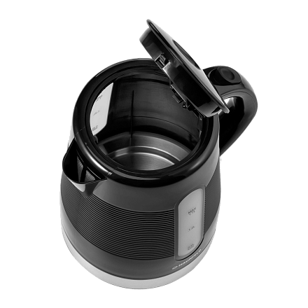 - Автоматически открывающаяся крышка: Удобная крышка плавно открывается одним нажатием кнопки, что позволяет легко наполнять чайник водой, не прикасаясь к горячим поверхностям.