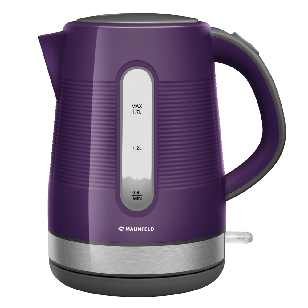 Электрический чайник MAUNFELD MGK-631VL выполнен в стильном и насыщенном фиолетовом цвете, который станет ярким и запоминающимся акцентом на вашей кухне. Модель сочетает в себе эффектный внешний вид и продуманную функциональность. Удобная мерная шкала на корпусе позволяет легко следить за уровнем воды, что очень удобно при наполнении и кипячении. Носик данного прибора оснащен специальным фильтром от накипи, который обеспечивает дополнительную защиту, задерживая частицы известковых отложений и гарантируя чистоту наливаемого напитка. Кнопка включения и выключения обладает встроенным световым индикатором нагрева и располагается внизу, что позволяет легко контролировать работу прибора. Вместительный объем 1,7 литра позволяет вскипятить воду для всей семьи. Высокая мощность обеспечивает быстрое закипание. Для безопасности предусмотрено автоматическое выключение при закипании и защита от перегрева. Удобная крышка открывается одним нажатием кнопки. Поворотная база на 360 градусов делает использование максимально комфортным. Сочетание яркого фиолетового цвета, продуманных деталей (мерная шкала, фильтр в носике, световой индикатор) и надежной функциональности делает этот чайник идеальным выбором для тех, кто ценит стиль и комфорт.