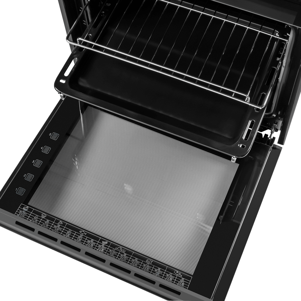 - Комфортный доступ: Телескопические направляющие на одном уровне обеспечивают плавное и безопасное извлечение противней.