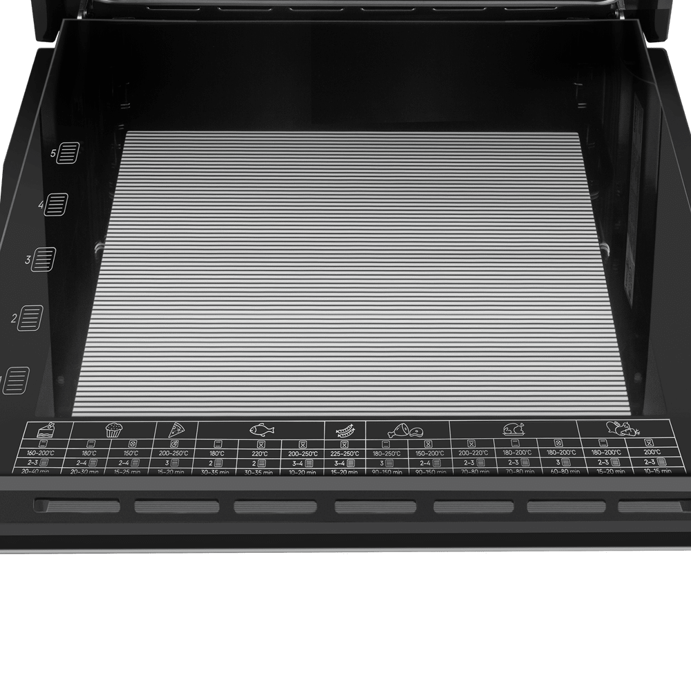 - Продуманная конструкция: Дверца с тройным стеклом для эффективной теплоизоляции. Яркое внутреннее освещение позволяет следить за процессом без потери тепла.