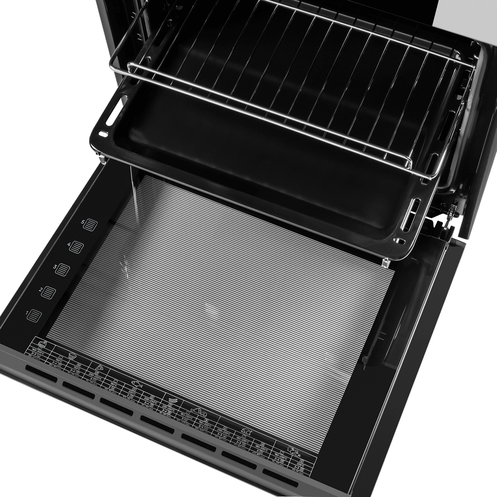 - Комфорт и безопасность в использовании: Трёхслойное остекление дверцы минимизирует нагрев, внутренняя подсветка позволяет контролировать процесс готовки, а телескопические направляющие облегчают извлечение посуды.