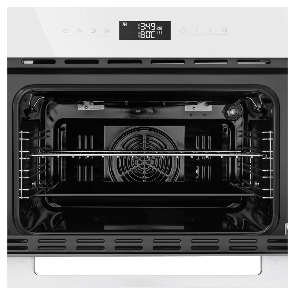 - Повышенная безопасность и комфорт: Технология «холодный фронт» с многослойным остеклением дверцы поддерживает ее внешнюю температуру на безопасном уровне (около 50°C), предотвращая ожоги. Яркая внутренняя подсветка позволяет контролировать процесс приготовления, не открывая дверцу и не выпуская тепло.