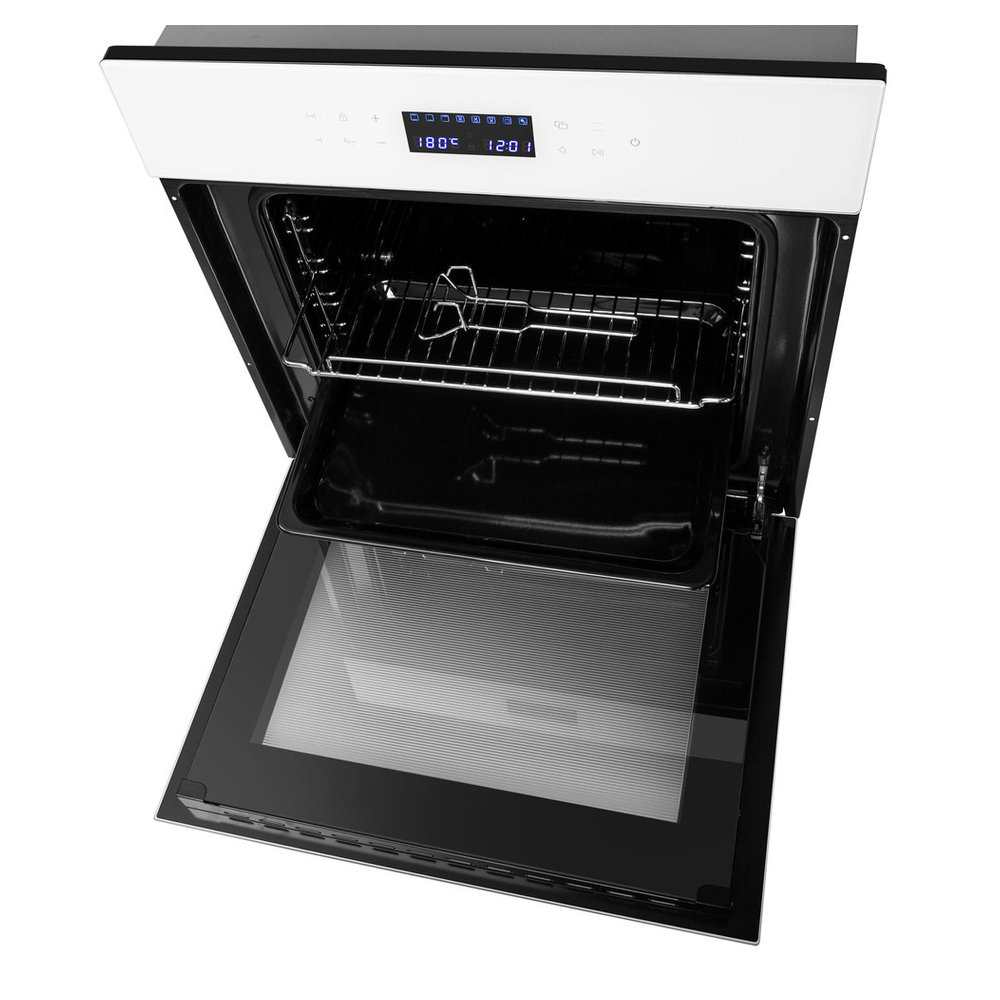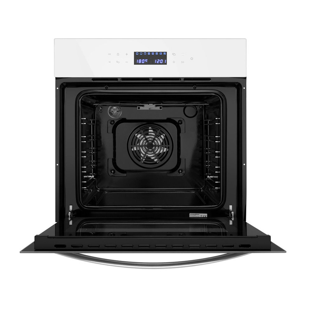 - Универсальный дизайн: Сочетание белого корпуса и серебристой фурнитуры позволяет духовому шкафу гармонично вписаться как в классический, так и в современный кухонный интерьер.