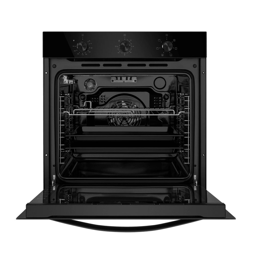 - Премиальная безопасность и дизайн: Дверца с тройным тонированным стеклом выполняет сразу несколько функций: эффективно сохраняет тепло внутри, создавая мощный «холодный фронт» снаружи для полной безопасности, и придает устройству стильный, современный вид. Система тангенциального охлаждения защищает фасад кухни и элементы управления от перегрева.