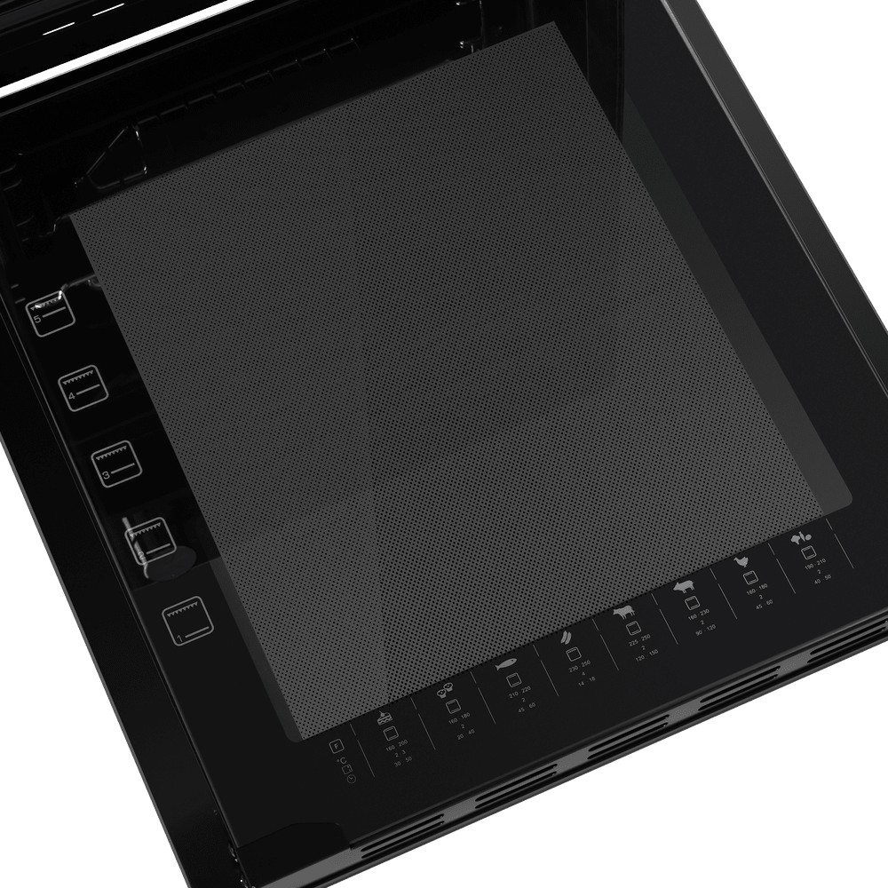 - Тангенциальное охлаждение: Встроенная система отводит горячий воздух от задней стенки духового шкафа через специальный канал внизу, предотвращая перегрев окружающей мебели и фасадов, что особенно важно при встраивании.