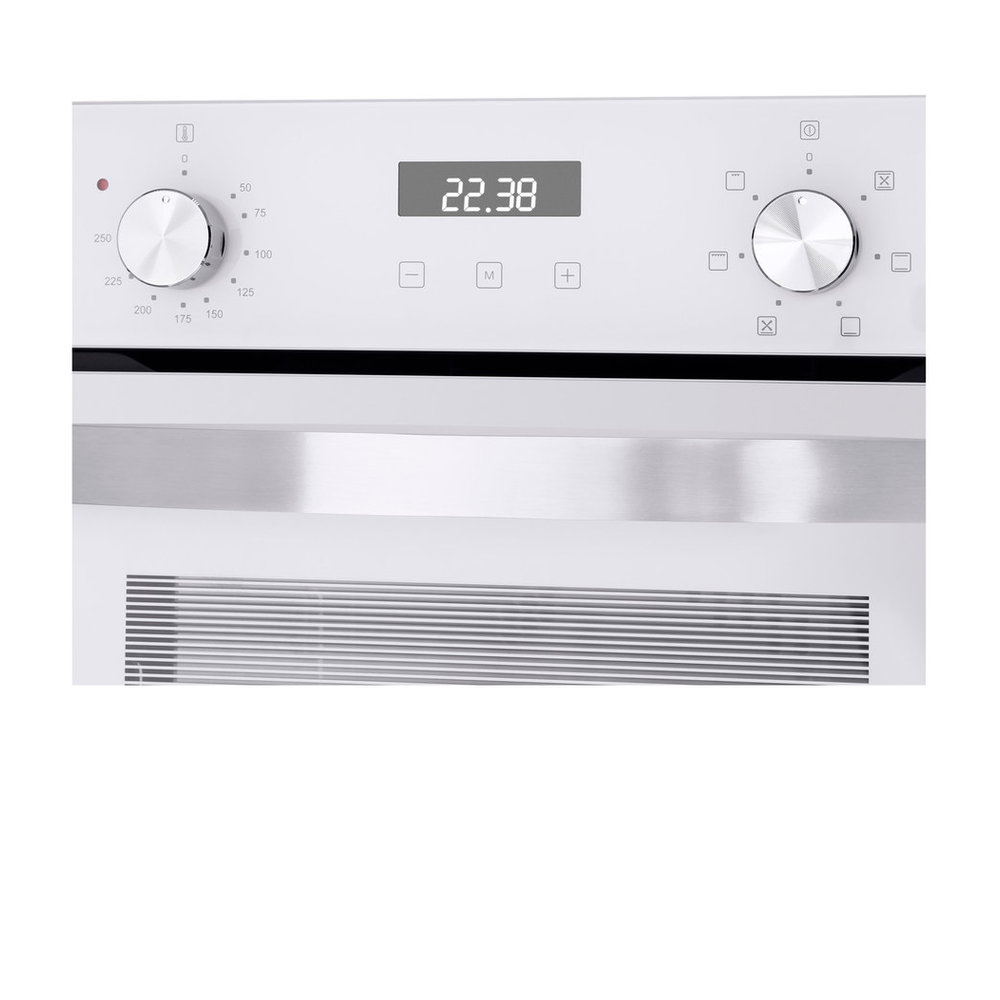 - Гибридная электронная панель: Управление осуществляется через современный сенсорный интерфейс для выбора функций и надежные поворотные переключатели для интуитивной регулировки температуры и времени, что делает процесс настройки быстрым и понятным.