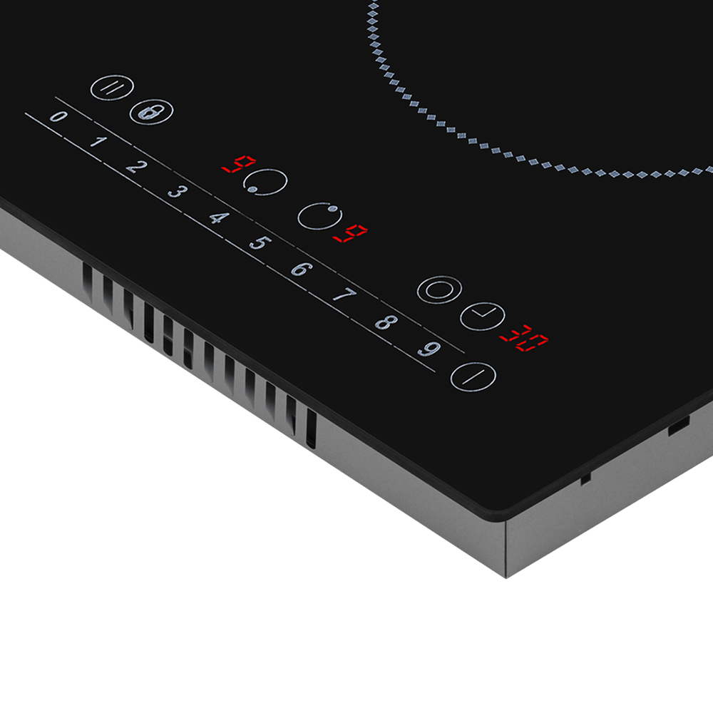 - Удобное и простое управление: Сенсорный слайдер в сочетании с тактильными кнопками делает регулировку мощности интуитивной и точной. Девять ступеней нагрева позволяют идеально подобрать температуру для любого блюда. Индивидуальные таймеры для каждой зоны и функция Stop & Go (пауза) предоставляют полный контроль над временем приготовления и возможность мгновенно приостановить процесс.