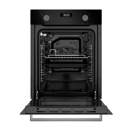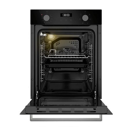 - Оптимальная компактность: Шкаф специально разработан для узких ниш шириной 45 см (внешние габариты 59.5×44.8×55 см), что позволяет интегрировать его даже в самую малогабаритную кухню. При этом полезный объем рабочей камеры составляет 49 литров, что достаточно для комфортного приготовления блюд на семью из нескольких человек.