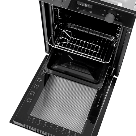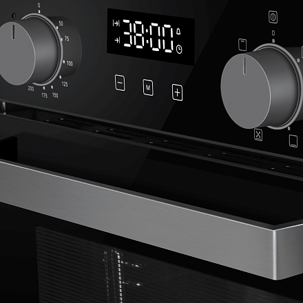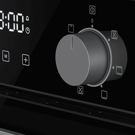 - Удобное комбинированное управление: Панель управления объединяет точные поворотные переключатели для основных настроек и сенсорный программатор с цифровым дисплеем для установки таймера и выбора программ. Такая комбинация обеспечивает интуитивный контроль над процессом приготовления.