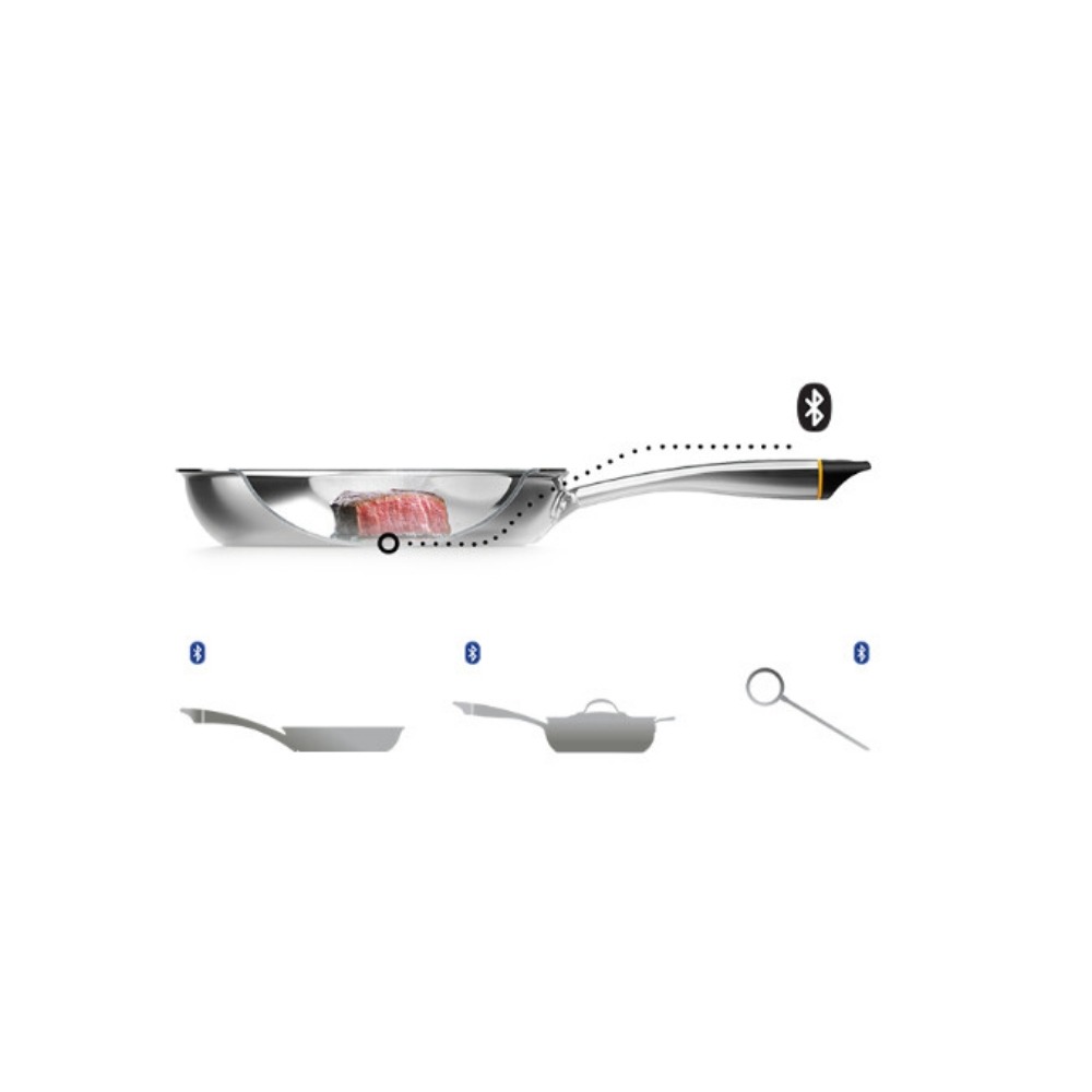 В центре дна расположен датчик температуры, который с максимальной точностью определяет текущую температуру посуды, что позволяет контролировать процесс приготовления и добиваться наилучших результатов.