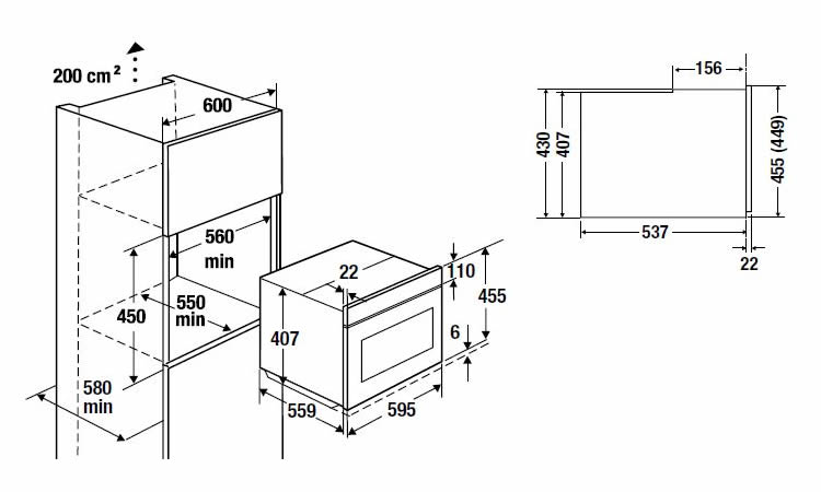 Размеры прибора (Ш х В х Г): 595 x 455 x 559 мм