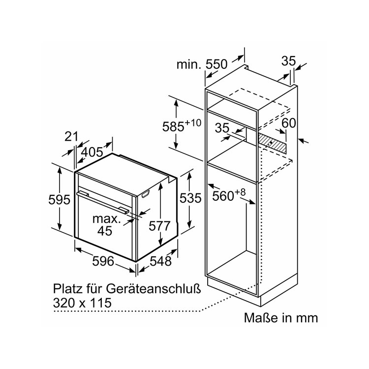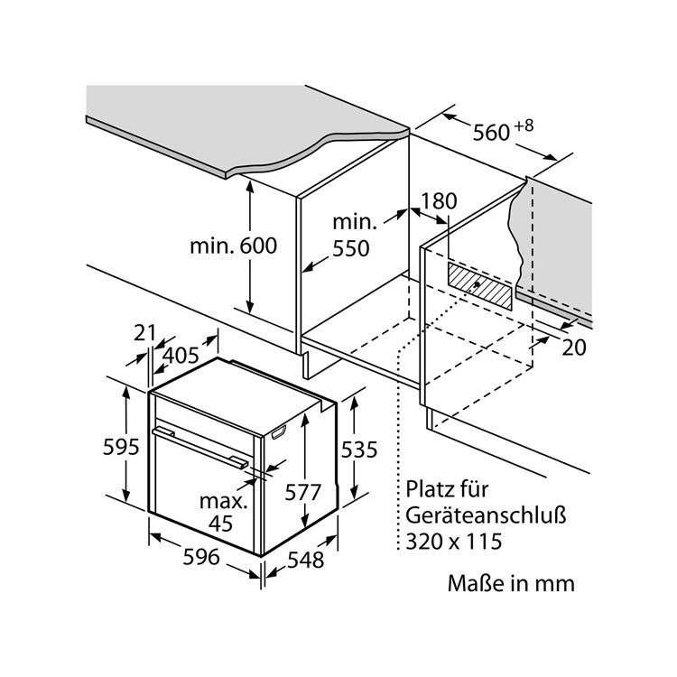 Размеры ниши для встраивания, см (В х Ш х Г):