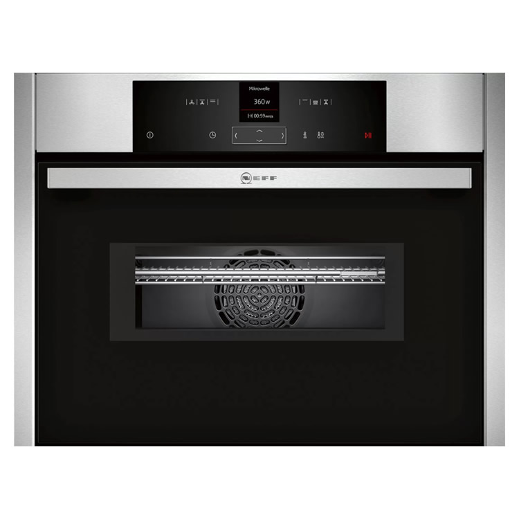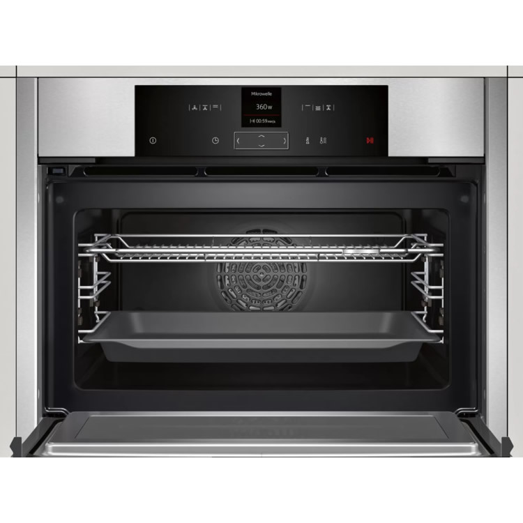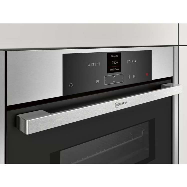 Микроволновая печь Neff C15MR02N0 оборудована камерой из нержавеющей стали, которая гарантирует ее прочность и устойчивость к коррозии. Нижний дверной упор обеспечивает легкое открывание и закрывание дверцы, а также полное откидывание, что упрощает размещение внутри печи больших контейнеров. Микроволновая печь оснащена пятью уровнями мощности микроволн, максимальная из которых составляет 900 Вт, что позволяет выбрать оптимальный режим приготовления для мяса, птицы, рыбы, картофеля и полуфабрикатов.